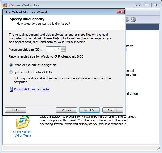En la siguiente ventana se indica el tamaño del disco duro que poseerá nuestra máquina virtual, nunca podrá ser superior al espacio que queda libre en el Pendrive, si el Pendrive es de 8 gigas se seleccionará un tamaño de 4 Gigas, si el Pendrive es de 16 Gigas se seleccionará un tamaño de 8 Gigas. y se pulsará Next.