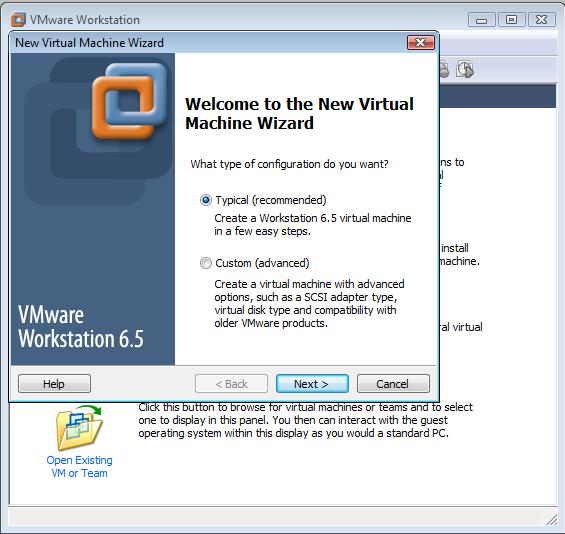 Hay dos modos de crear la máquina virtual, uno es con las opciones típicas y otro modo avanzado, se seleccionará Typical, y se pulsará siguiente. En la siguiente ventana nos permite indicar si se desea instalar el sistema operativo a través del cd rom, de una imagen ISO, o se deja para después la instalación del sistema operativo. Se seleccionará la tercera opción, I will install the operating system later.