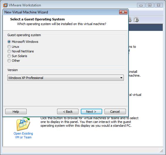 Se pulsará next y en la siguiente ventana se indicará que sistema operativo se pretende instalar en esta máquina virtual, al seleccionar el sistema operativo que se desea instalar se haran las configuraciones oportunas automáticamente para que este sistema operativo funcione correctamente. Se seleccionará Microsoft Windowsy en la pestaña versión se seleccionará Windows XP Profesional y se pulsará siguiente.
